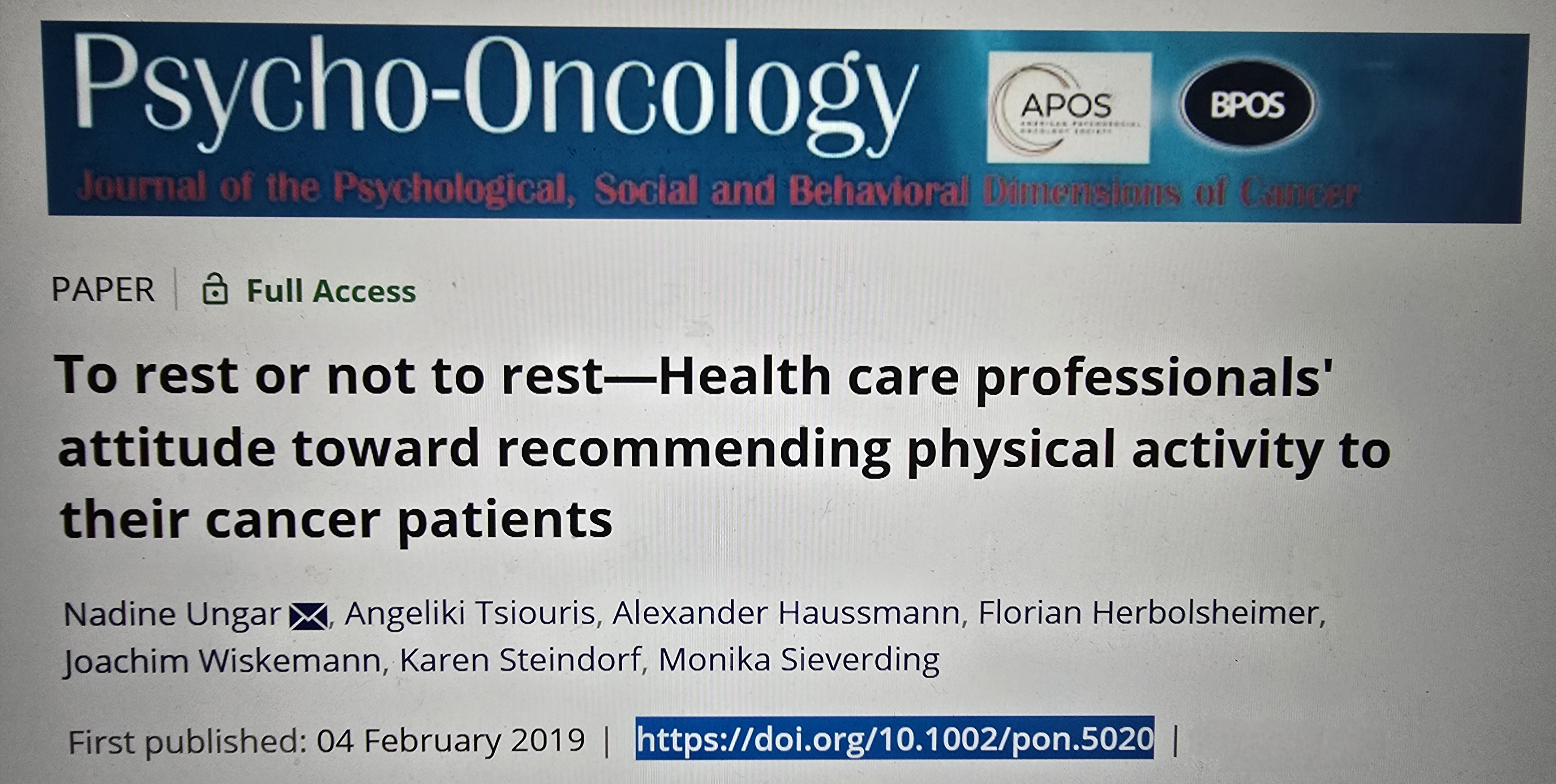 Zusammen mit Prof. Dr. Karen Steindorf, Prof. Dr. Joachim Wiskemann, Prof. Dr. Nadine Ungar, PD Dr. Laura Schmidt, Dr. Alexander Haussmann und Dr. Angeliki Tsiouris